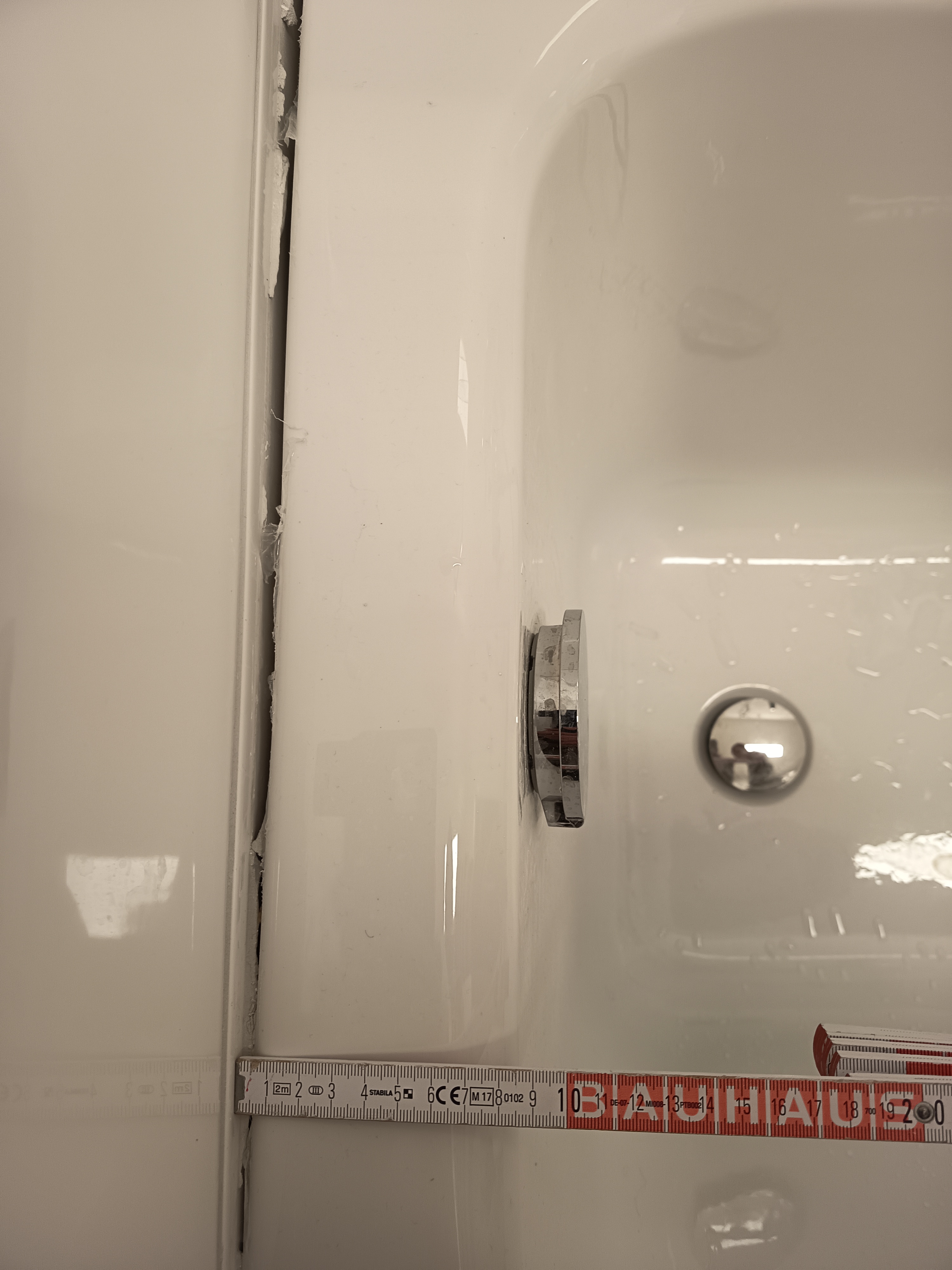 Die Badewanne wurde vor den Fugenarbeiten an den Fliesen eingebaut, sodass die Fliesen hinter der Badewanne nicht verfugt sind. Nach dem Verfugen der Fliesen blieben auf dem Badewannenrand, auf der dort noch vorhandenen Schutzfolie, Mörtel- und Fugenmaterialreste zurück, die von der ausführenden Firma nicht entfernt wurden.