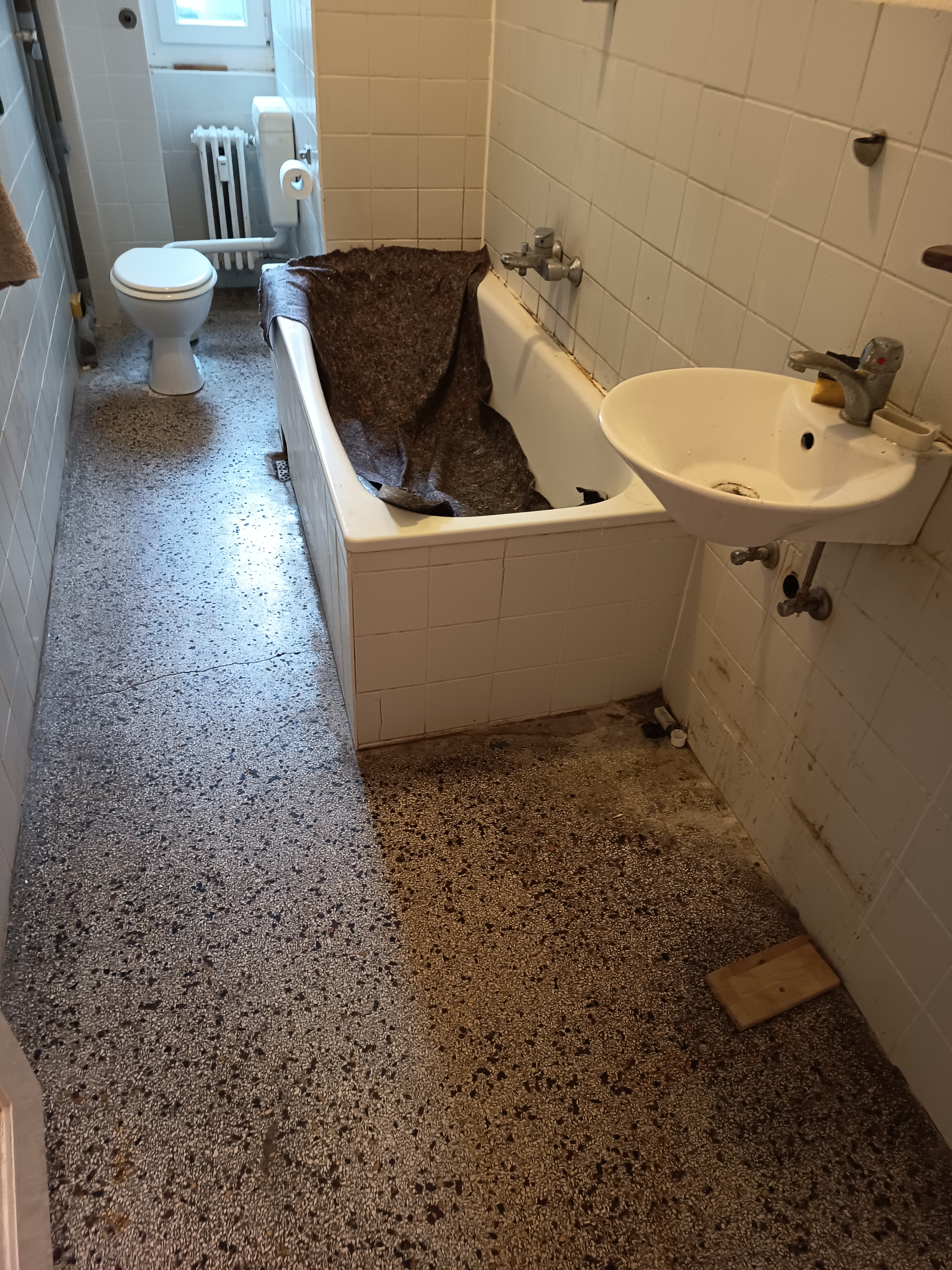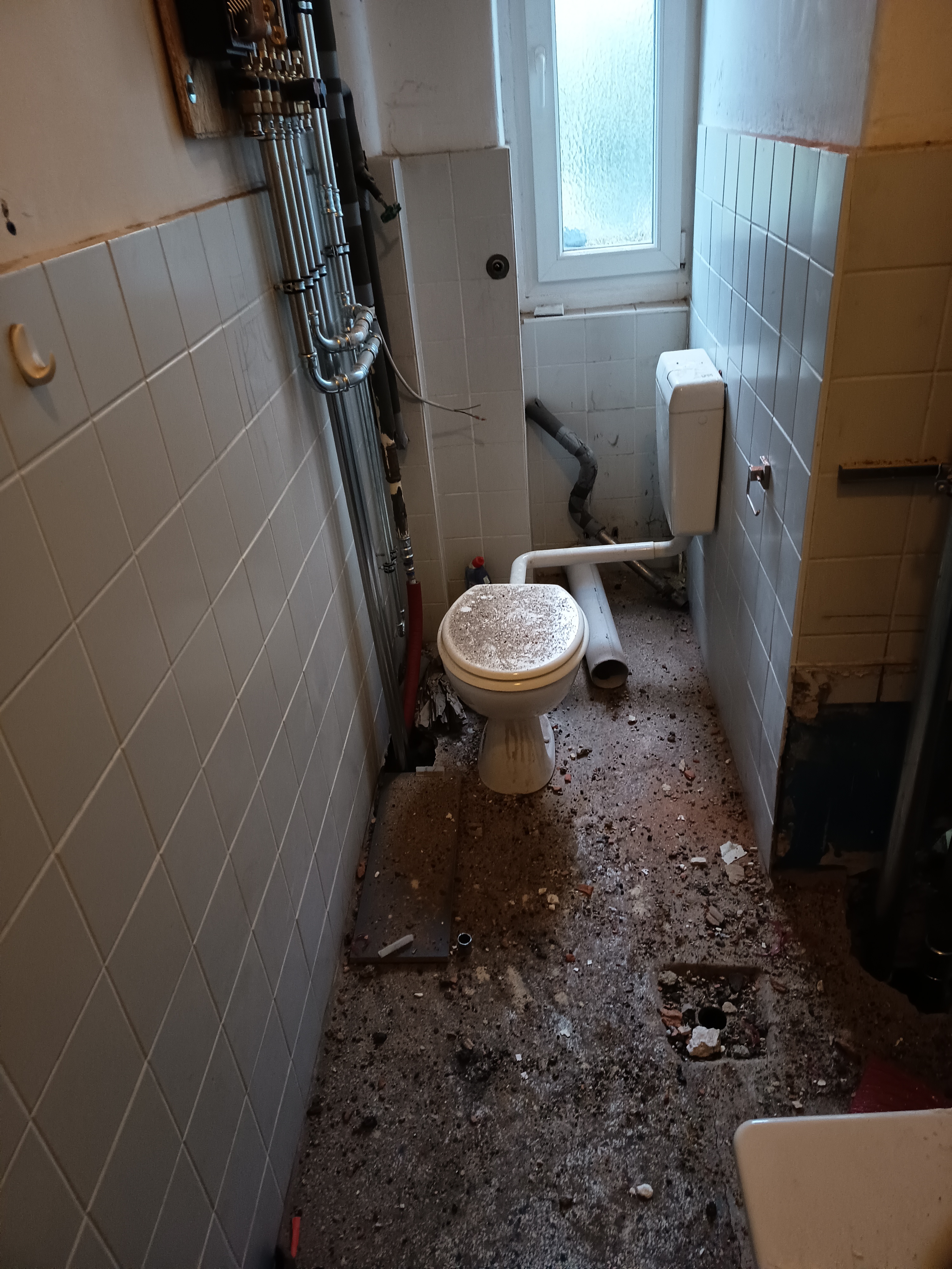 | 3 | 28.10.2025 | Fortsetzung der Abbrucharbeiten: Badewanne entfernt, Boden aufgerissen. |